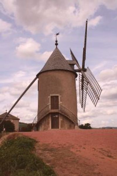The windmill for which Moulin a Vent is eponymously named. Moulin a Vent, unlike its other Beaujolais brethren, is more concentrated, more tannic, less fruity, and not only capable of, but required to age, up to ten years or more. It is so uncharacteristic of the Beaujolais region that it is sometimes compared to a light Burgundy.